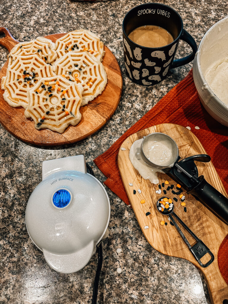 Start a fall morning with a little Halloween fun in the kitchen. Think spider web waffles (just drizzle the batter in a web pattern), ghost-shaped pancakes, or cinnamon rolls turned into mummies with icing “bandages.” It’s such a simple way to surprise the kids and make an ordinary morning feel festive.