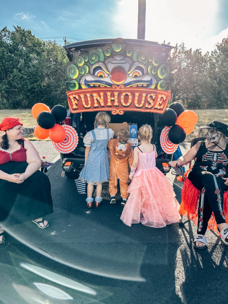 Our community hosts a lot of trunk-or-treat events for kids, and they’ve quickly become one of our favorite seasonal traditions. The military hospital puts on such a fun one, and our neighborhood also joins in with decorated cars, candy, and music. These events are perfect for little ones who want to trick-or-treat without walking house to house, and they’re such a safe, festive way to celebrate. Check your local mom groups and Facebook pages to see what’s happening near you, there’s usually more than you think!
