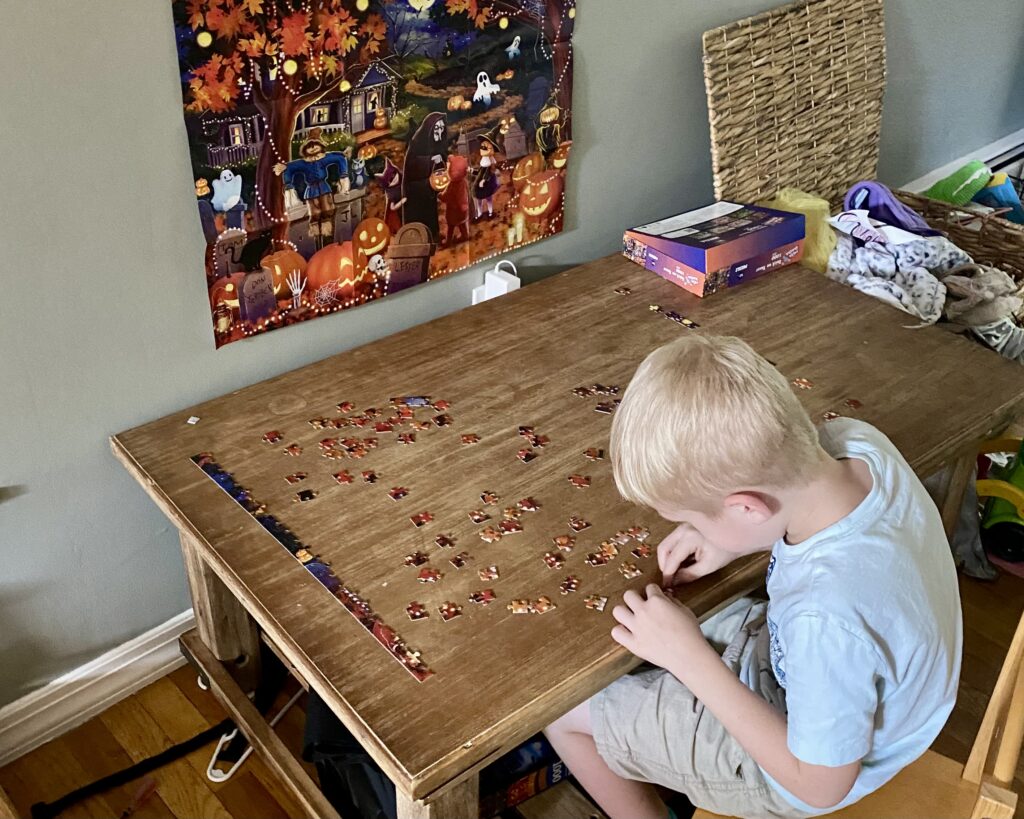 While living in New Jersey, we started a new family tradition: each October 1st, I pick a fall or spooky-themed puzzle for us to work on throughout the month, aiming to finish it by Halloween night. It’s a slow, cozy activity we can come back to in the evenings, and it’s become one of my favorite ways to mark the season.